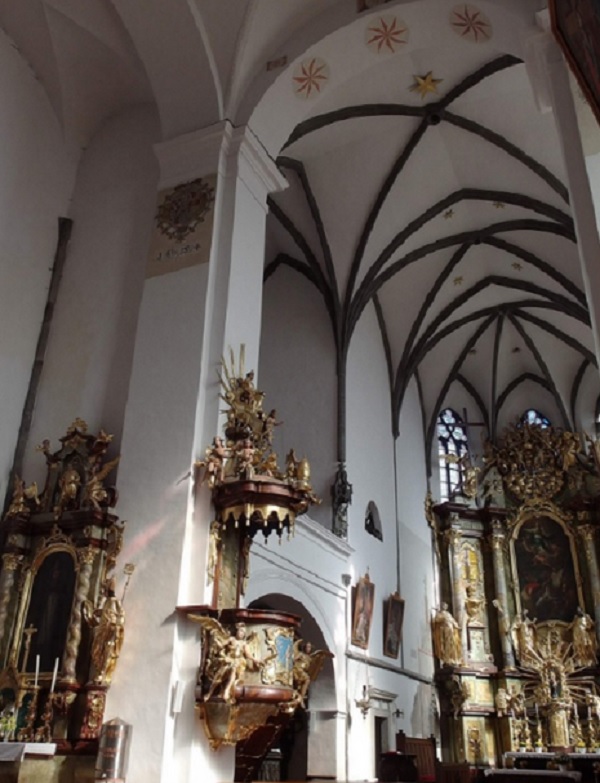 V 17. stol. přestavěn na trojlodí s pětiboce uzavřeným presbytářem se sakristií na severní straně. Sakristie je spojena chodbou na obloucích s přilehlou farou. Při severním rameni příčné lodi se nachází obdélníková věžovitá kaple Anděla strážce, na severní straně trojlodí kostnice a při jeho jihozápadním nároží větší třípatrová renesanční věž. Vnitřní řezbářská výzdoba je zčásti dílem Jana Václava Hammera z Čimelic z doby kolem r. 1770.Chrám Nanebevzetí Panny Marie se vypíná na západním okraji původního městského jádra a tvoří skutečnou dominantu města.
