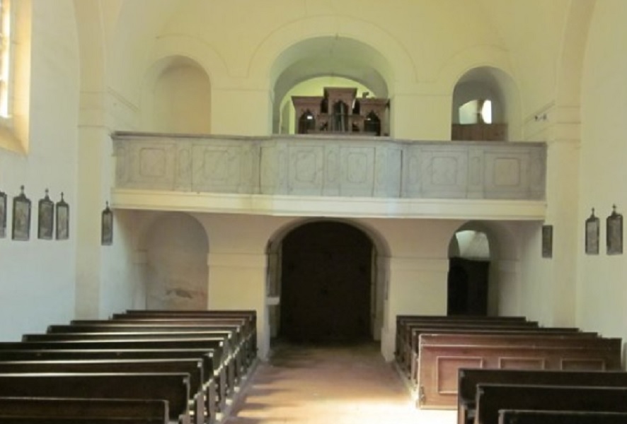V presbytáři a v lodi jsou po jednom poli valené klenby se stýkajícími se výsečemi, sbíhající na koutové polopilíře. Kruchta je na dvou pilířích, otevřená v přízemí a patře trojicemi oblouků.