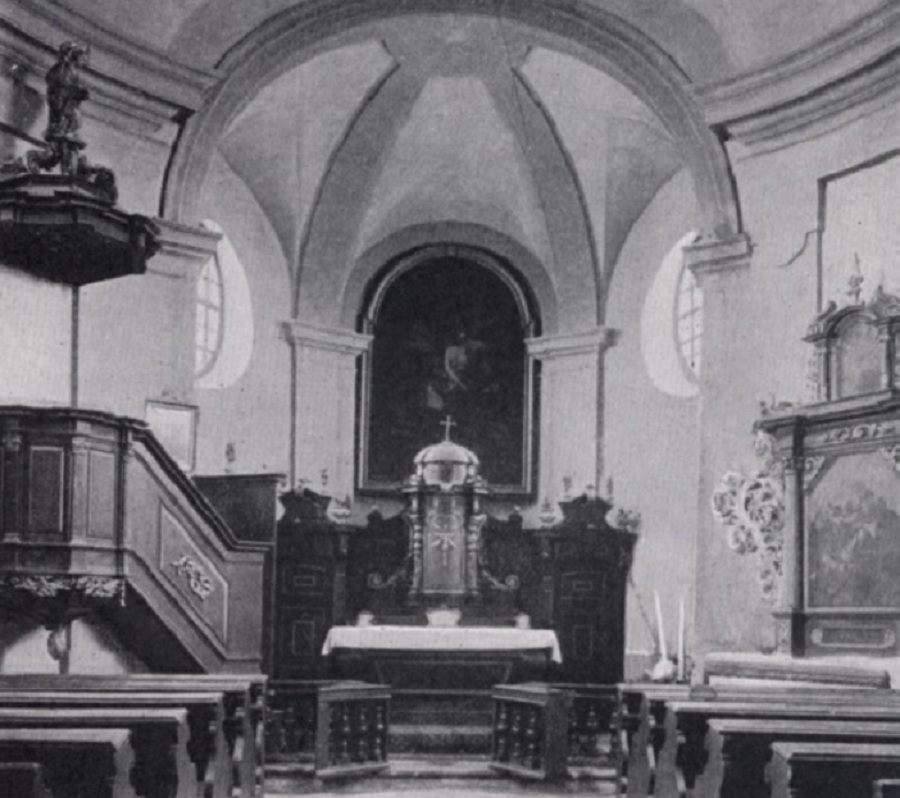 Presbytář je sklenut konchou s lunetami a pasy sbíhajícími na římsové pilastry. Loď má plackovitou klenbu s lunetami, pilíře v diagonálách člení lizénový rámec s čabrakovitými hlavicemi a úsek římsy; z přidružených římsových pilastrů vybíhá jednak pás triumfálního, oblouku, jednak pás sledující vzdutí klenby, konvex-konkávní je kruchta.