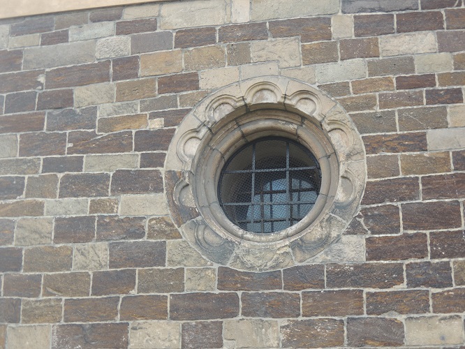 Východní stěna presbytéria má kruhové okno, jehož ostění lemuje obloučkový vlys. Nejpozoruhodnější a nejpokročilejší detail celé stavby však představuje křížová klenba presbytáře, jež má mohutná hranolová žebra členěná třemi oblouny. Žebra na východní straně dosedají na sloupky vložené do koutů.