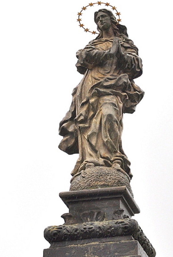 Na podstavci křížového půdorysu jsou okolo ústřední postavy Immaculaty rozmístěny sochy, vpředu vlevo Jan Křtitel v rozevlátém plášti na holém těle. V ruce drží knihu a u nohou mu leží beránek. Vpředu vpravo sv. Jan Nepomucký s typickými atributy - palmovou ratolestí, křížkem v náručí a děkanskou čapkou v pravé ruce.