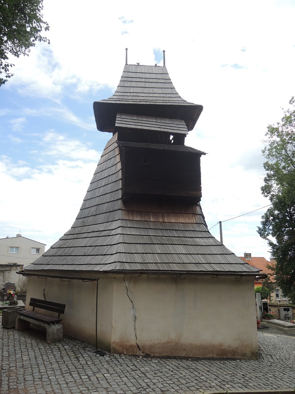 Kolem dřevěné zvonice stojí hrázděná obvodová zídka, druhotně omítnutá, o průměru 8 metrů. Konstrukce zvonice je vzpěradlová, stupňovitá, s otevřeným zvonovým patrem. Je považována za nejcennější pozdně gotickou zvonici v České republice, která nemá podle odborníků obdobu ani v evropském měřítku.