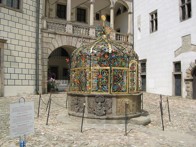 Stavba středověkého hradu, nazývaného v nejstarší historické zprávě z r. 1220 „Novum castrum“ (Nový hrad), je spjata se jménem Jindřicha Vítkovce, zakladatele samostatné Vítkovské linie pánů z Hradce užívající erbu se zlatou růží v modrém poli. Tehdy vznikla okrouhlá Černá věž, navazující palác a byla posílena soustava hradeb. Celý středověký stavební vývoj sledoval mimo vysoké míry obranyschopnosti také reprezentativní charakter usedlosti. Příslušníci rodu pánů z Hradce zastávali již na přelomu 12. a 13. století významné pozice při Českém knížecím a později královském dvoře. Krom svého rodu a šlechtického stavu reprezentovali také Českou zemi. Starý palác při Černé věži se rozrostl ve více stavebních fázích. Jeho současná rozloha je dána poslední, pozdně-gotickou úpravou na přelomu 15. a 16. století. Druhý gotický palác stál na místě dnešního Španělského křídla. Příslušníci rodu pánů z Hradce ovlivňovali podstatně veškeré hospodářské, politické i kulturní dění v této oblasti a téměř v každé generaci zastávali i významné funkce na královském dvoře.