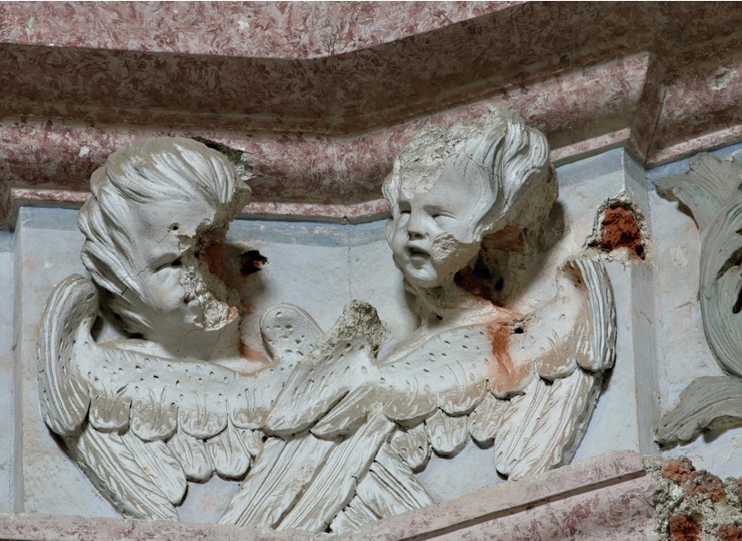 Poškozená výzdoba kostela